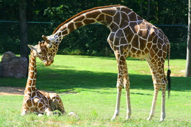 Njё orё pasi ka lindur, bebi gjirafё qёndron mirё nё kёmbё dhe pёr pak orё ai fillon tё ecё.