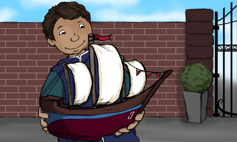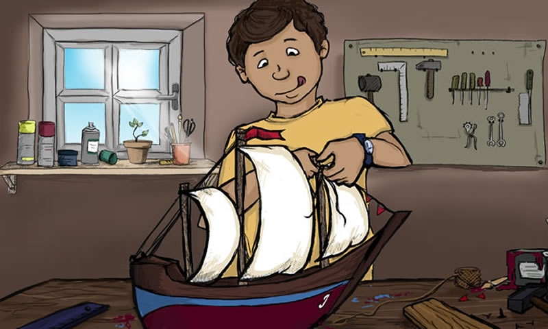 Me entuziazёm ai punoi pёr ditё me rradhё pёr tё ndёrtuar njё varkё me vela. Atij madje i ishte lejuar tё shkonte nё punishten e babait tё tij.