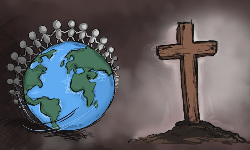 "Epo, Perёndia krijoi njeriun, por pastaj njeriu u largua nga Perёndia pёr shkak tё mёkatit. Kur Jezusi vdiq nё kryq, Ai pagoi me jetёn e Tij qё ne tё mund t’i pёrkasim Perёndisё pёrsёri."