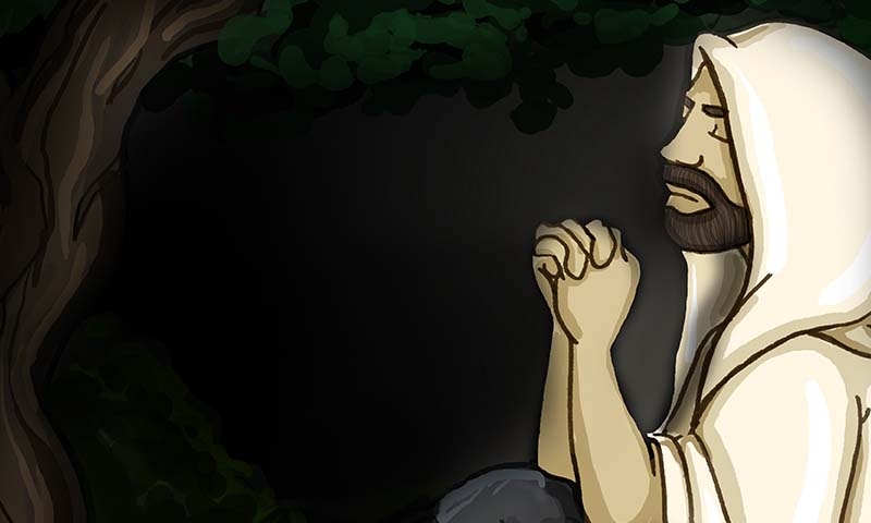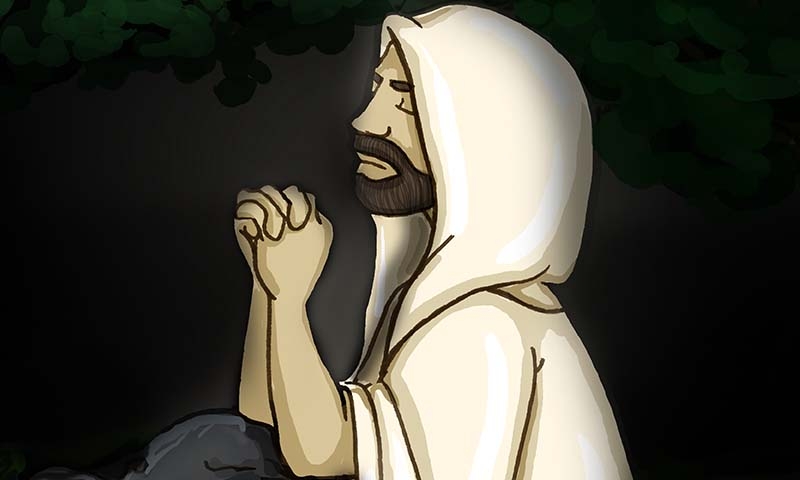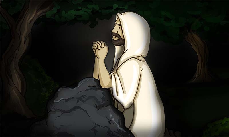 Ai i la shokёt e Tij tё prisnin disi pas Tij dhe u gjunjёzua nё tokё. Jezusi kishte pikёllim tё madh.