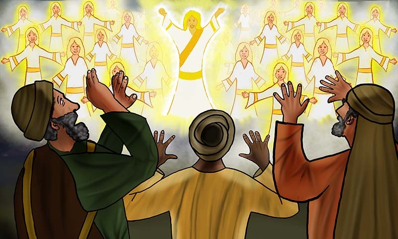 Nё mes tё natёs, njё dritё e madhe shndriti. Ata ishin shumё, por shumё tё frikёsuar. Njё engjёll, njё lajmёtar i Perёndisё, erdhi nga Qielli tek ata.