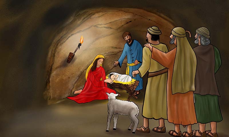 "Sot nё qytetin e Davidit njё Shpёtimtar ka lindur pёr ju; Ai ёshtё Mesia , Zoti. Kjo do tё jetё njё shenjё pёr ju: Ju do tё gjeni njё foshnje tё mbёshtjellё me pelena dhe tё shtrirё nё njё grazhd."