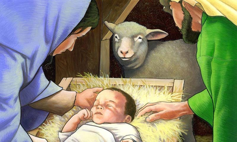 Maria e mori Jezusin, e mbёshtolli me pelena dhe e vendosi atё nё njё grazhd. Plani i Perёndisё u pёrmbush.